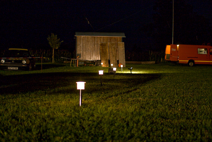 Weg zum Klowagen beleuchtet (noch irgendeine wichtige Vorschrift)